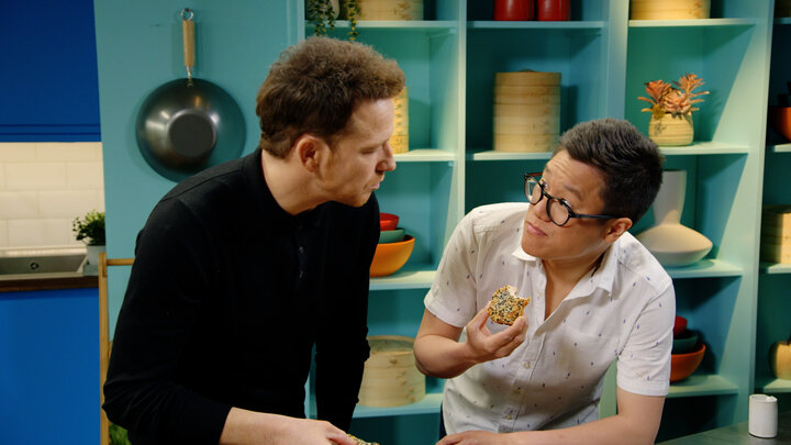 Jeremy starts with a Steamed Salmon. Joe learns how to prepare Sesame Prawn Toast. Jeremy then makes Vietnamese Lemongrass Pork Chops before baking classic Chocolate Chip Cookies.